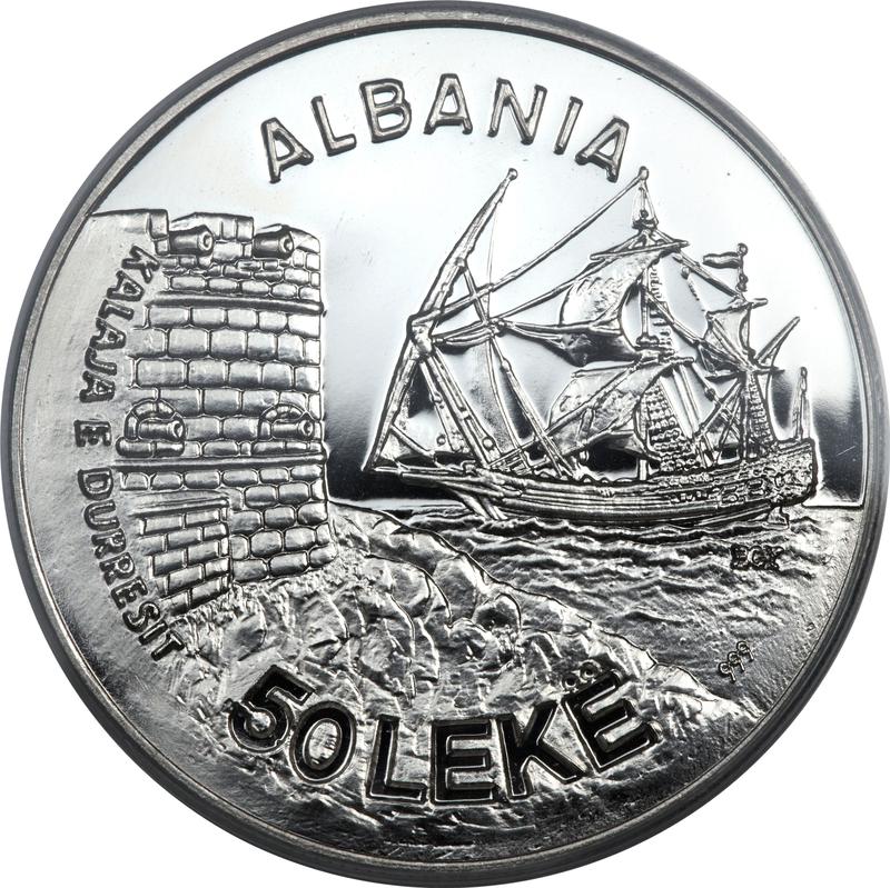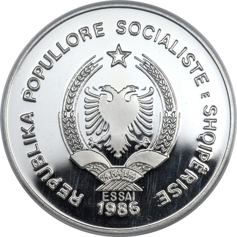 Find out the current coin value of the Albanian Pattern 50 Lekë 1986 "Durazzo Seaport". Palladium. This palladium coin from the times of People's Republic struck at the Budapest Mint. Wondering how much a coin like this is worth? The record price belongs to the lot 24047 sold at the Heritage Auctions auction for USD 7,800. Bidding took place May 27, 2025.
