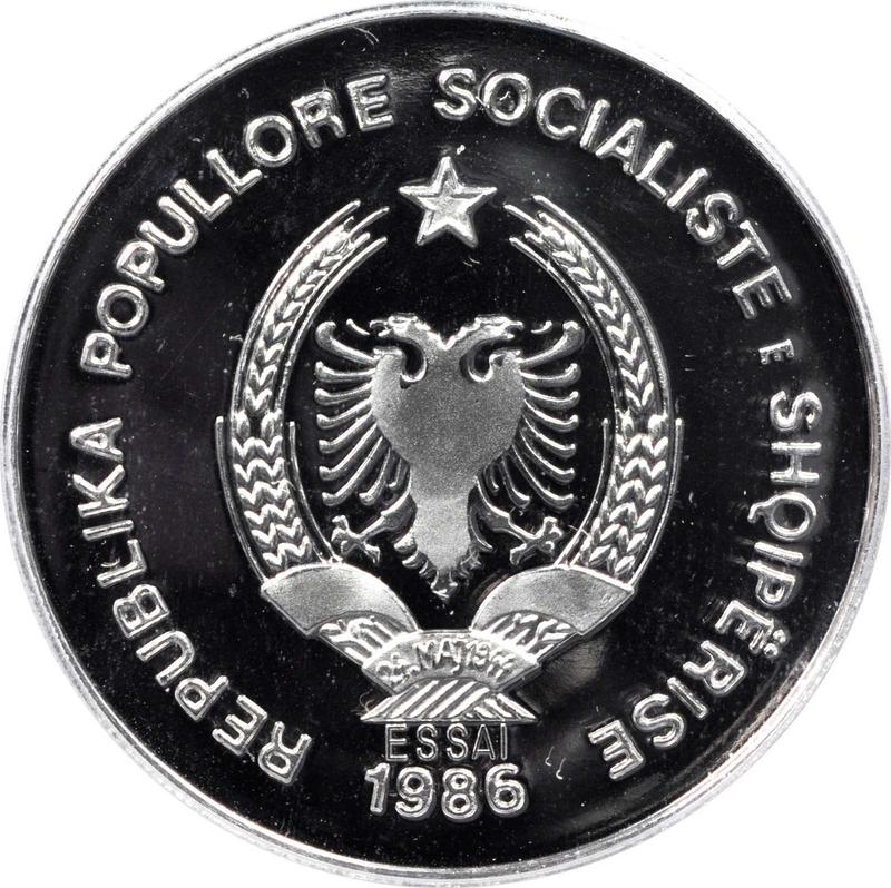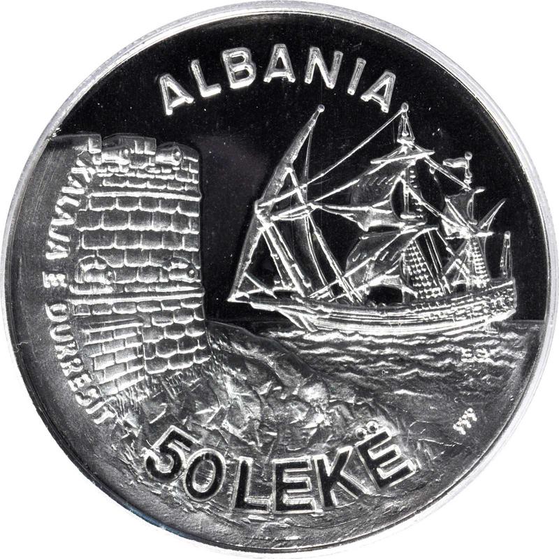 Find out the current coin value of the Albanian Pattern 50 Lekë 1986 "Durazzo Seaport". Platinum. This platinum coin from the times of People's Republic struck at the Budapest Mint. Wondering how much a coin like this is worth? The record price belongs to the lot 23013 sold at the Heritage Auctions auction for USD 4,600. Bidding took place January 2, 2011.