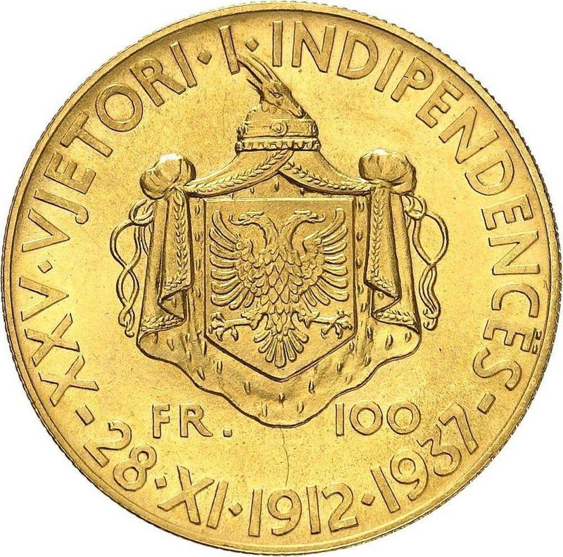 100 Franga Ari 1937 R "Independence" (Albania, Ahmet Zogu)