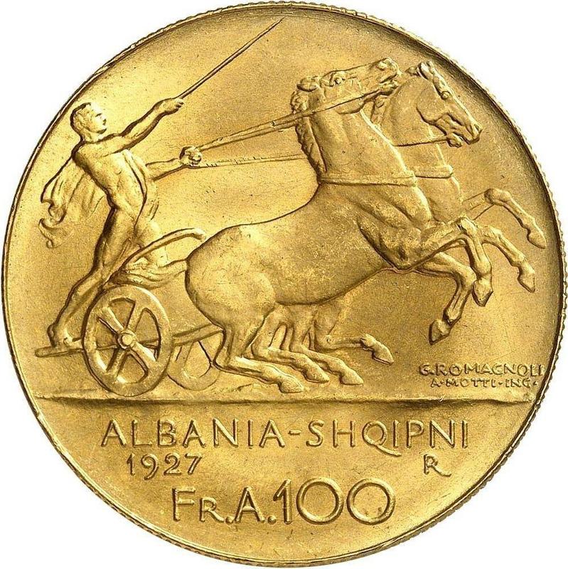 Find out the current coin value of the Albanian 100 Franga Ari 1927 with mark R. Two stars. This gold coin from the times of Ahmet Zogu struck at the Rome Mint. Wondering how much a coin like this is worth? The record price belongs to the lot 23012 sold at the Heritage Auctions auction for USD 9,488. Bidding took place April 15, 2011.