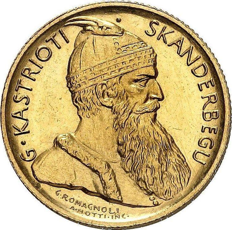 Find out the current coin value of the Albanian 20 Franga Ari 1926 "Skanderbeg" with mark R. Fasces. This gold coin from the times of Ahmet Zogu struck at the Rome Mint. Wondering how much a coin like this is worth? The record price belongs to the lot 975 sold at the Numismatica Genevensis SA auction for CHF 42,000. Bidding took place November 27, 2012.