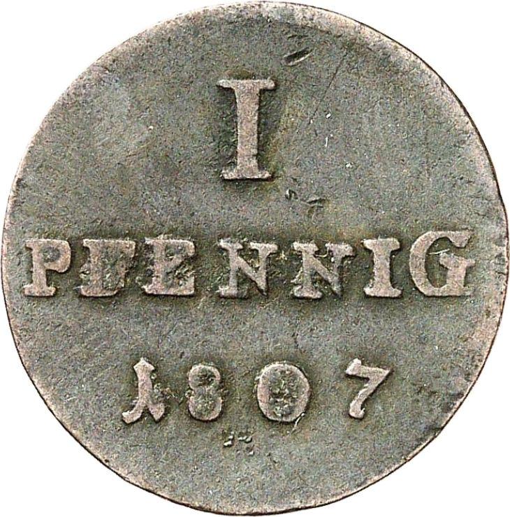According to the latest data as of December 5, 2025 the average price of a coin 1 Pfennig 1807 is 50 USD. The coin is made of non-precious metal, so in poor condition it may have extremely low value and liquidity.