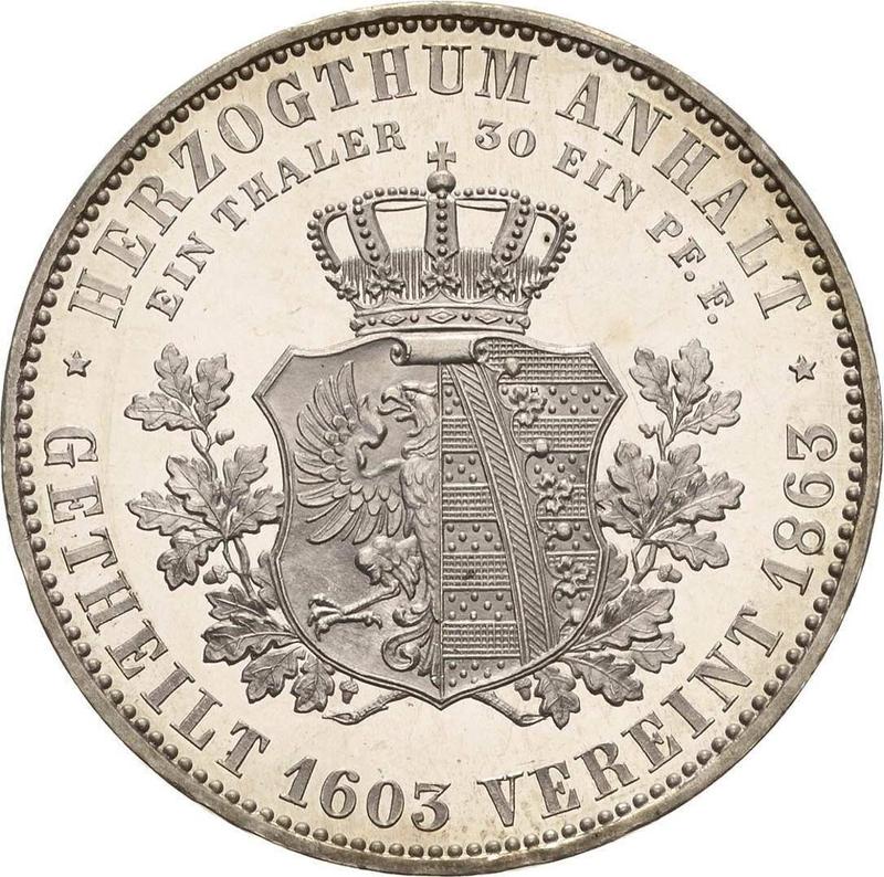 Thaler 1863 A "Reunification of the Duchy of Anhalt" (Anhalt-Dessau, Leopold Frederick)