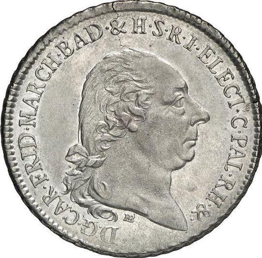 Find out the current coin value of the Baden Thaler 1803 with mark FE. This silver coin from the times of Charles Frederick struck at the Mannheim Mint. Wondering how much a coin like this is worth? The record price belongs to the lot 12 sold at the Heidelberger Münzhandlung Herbert Grün auction for EUR 14,500. Bidding took place May 13, 2016.