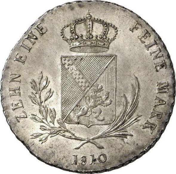 Find out the current coin value of the Baden Thaler 1810 with mark B. This silver coin from the times of Charles Frederick struck at the Mannheim Mint. Wondering how much a coin like this is worth? The record price belongs to the lot 3429 sold at the Heidelberger Münzhandlung Herbert Grün auction for EUR 10,000. Bidding took place November 20, 2014.