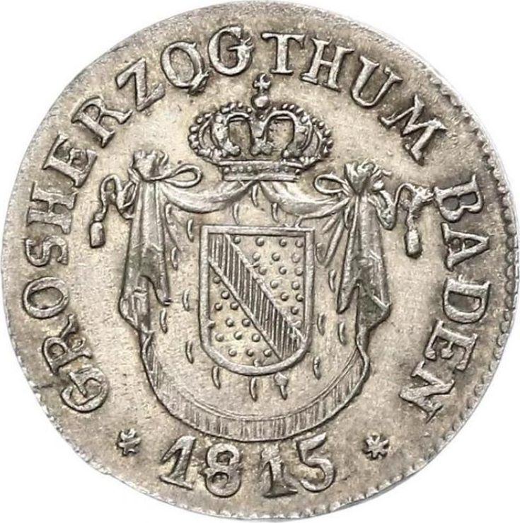 Find out the current coin value of the Baden 6 Kreuzer 1815 . This silver coin from the times of Charles Louis Frederick struck at the Mannheim Mint. Wondering how much a coin like this is worth? The record price belongs to the lot 702 sold at the Auktionen Münzhandlung Sonntag auction for EUR 150. Bidding took place December 6, 2023.