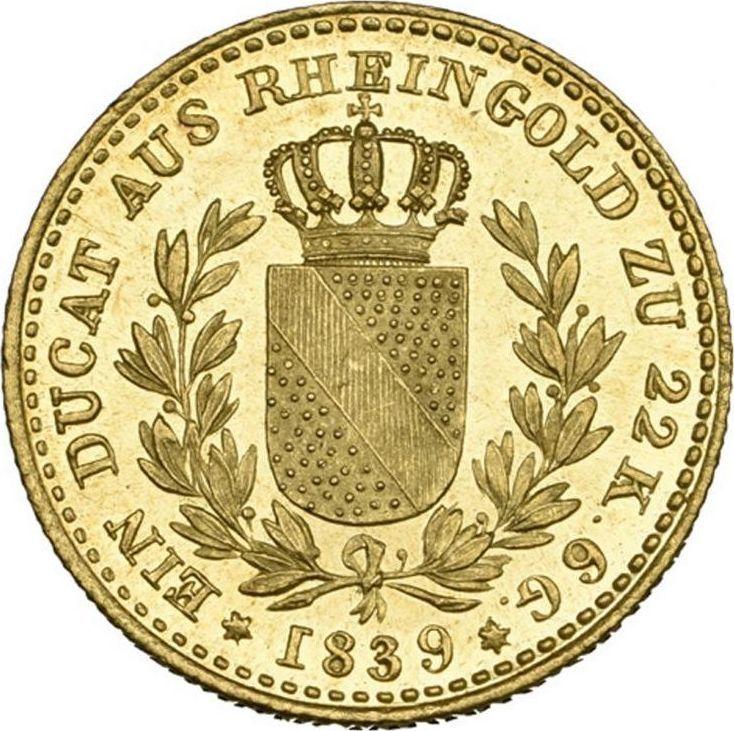 Find out the current coin value of the Baden Ducat 1839 . This gold coin from the times of Leopold struck at the Karlsruhe Mint. Wondering how much a coin like this is worth? The record price belongs to the lot 84 sold at the Westfälische Auktionsgesellschaft auction for EUR 4,200. Bidding took place February 7, 2011.