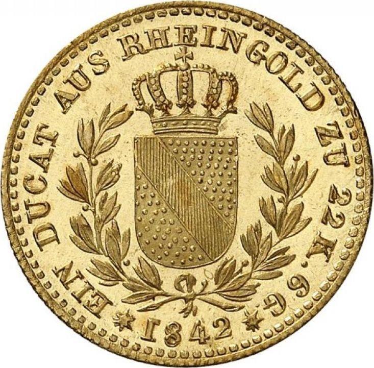 Find out the current coin value of the Baden Ducat 1842 . This gold coin from the times of Leopold struck at the Karlsruhe Mint. Wondering how much a coin like this is worth? The record price belongs to the lot 5433 sold at the Fritz Rudolf Künker GmbH & Co. KG auction for EUR 4,800. Bidding took place October 10, 2019.