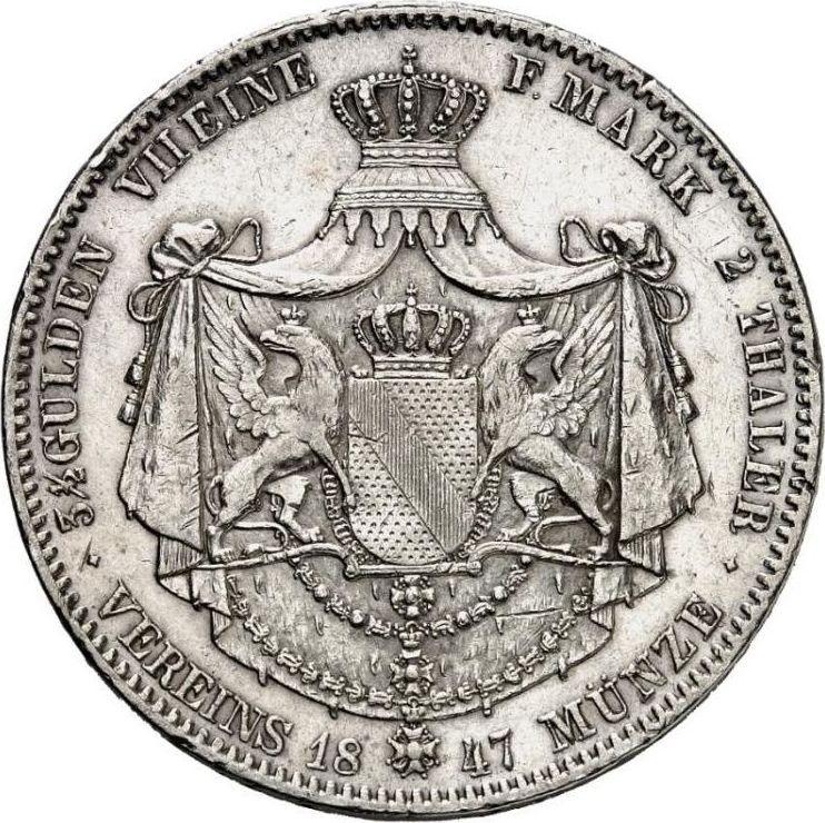 Find out the current coin value of the Baden 2 Thaler 1847 . This silver coin from the times of Leopold struck at the Karlsruhe Mint. Wondering how much a coin like this is worth? The record price belongs to the lot 519 sold at the Fritz Rudolf Künker GmbH & Co. KG auction for EUR 1,700. Bidding took place June 18, 2024.