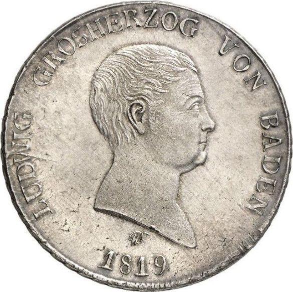 Find out the current coin value of the Baden Thaler 1819 with mark WD. This silver coin from the times of Louis I struck at the Mannheim Mint. Wondering how much a coin like this is worth? The record price belongs to the lot 518 sold at the Heidelberger Münzhandlung Herbert Grün auction for EUR 4,700. Bidding took place November 11, 2020.