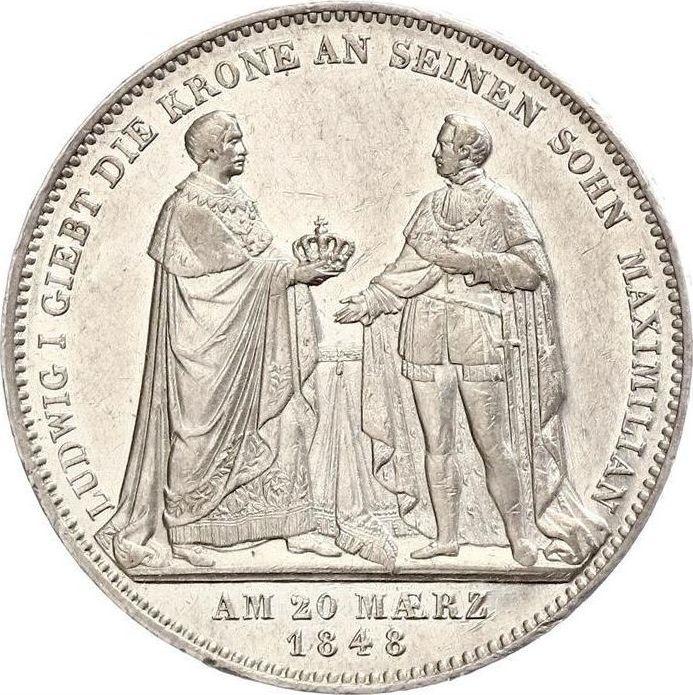 According to the latest data as of December 5, 2025 the average price of a Silver coin 2 Thaler 1848 "Abdication of Ludwig I" is 3700 USD for regular strike and 2700 USD for coins minted using the PROOF technology.