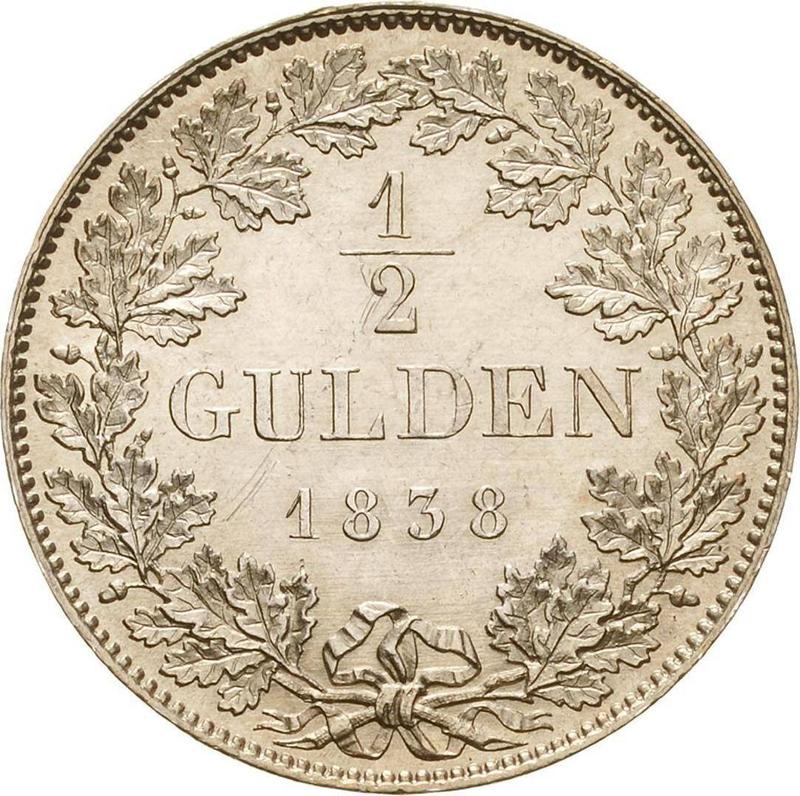 Find out the current coin value of the Bavarian 1/2 Gulden 1838 . This silver coin from the times of Ludwig I struck at the Munich Mint. Wondering how much a coin like this is worth? The record price belongs to the lot 1687 sold at the Leipziger Münzhandlung Heidrun Höhn auction for EUR 480. Bidding took place May 12, 2022.