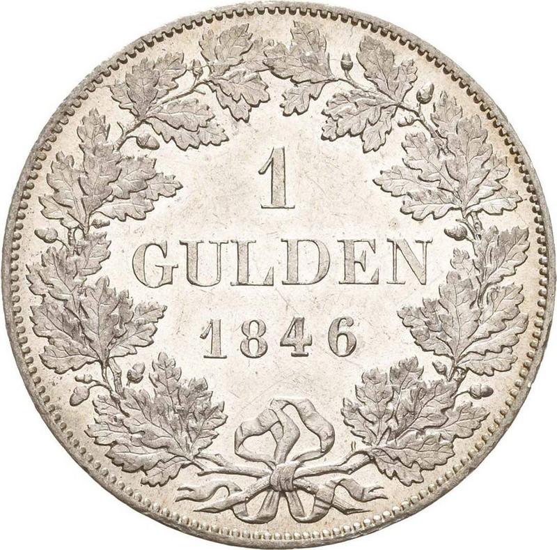 Find out the current coin value of the Bavarian Gulden 1846 . This silver coin from the times of Ludwig I struck at the Munich Mint. Wondering how much a coin like this is worth? The record price belongs to the lot 1520 sold at the Leipziger Münzhandlung Heidrun Höhn auction for EUR 280. Bidding took place November 17, 2021.