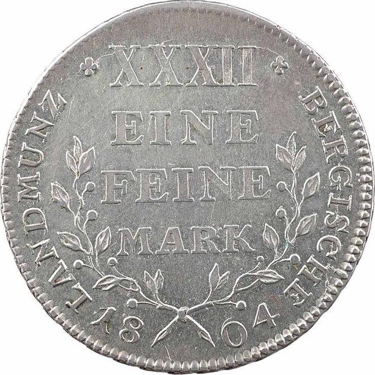 Find out the current coin value of the Berg 1/2 Thaler 1804 with mark R. This silver coin from the times of Maximilian Joseph struck at the Düsseldorf Mint. Wondering how much a coin like this is worth? The record price belongs to the lot 1414 sold at the Numismatica Genevensis SA auction for CHF 2,000. Bidding took place December 9, 2024.