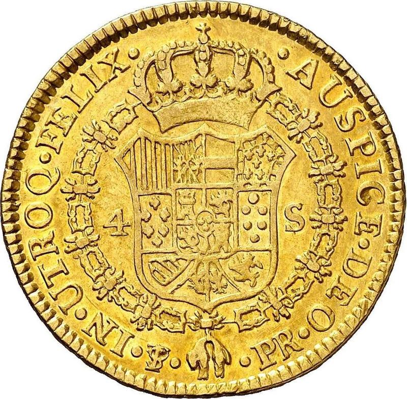 How much is the gold coin of Charles III 4 Escudos 1787 PTS PR?