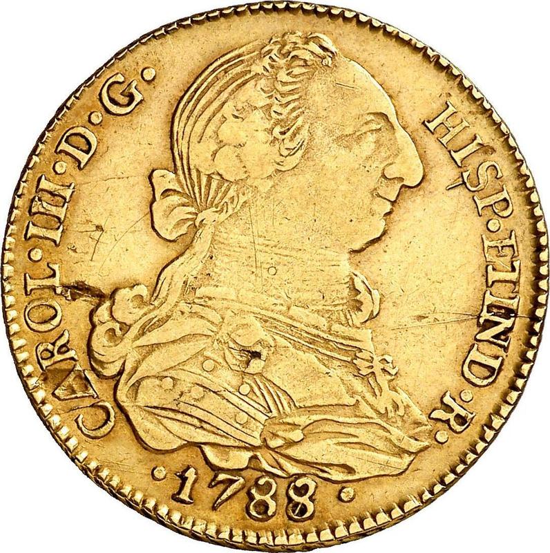How much is the gold coin of Charles III 4 Escudos 1788 PTS PR?