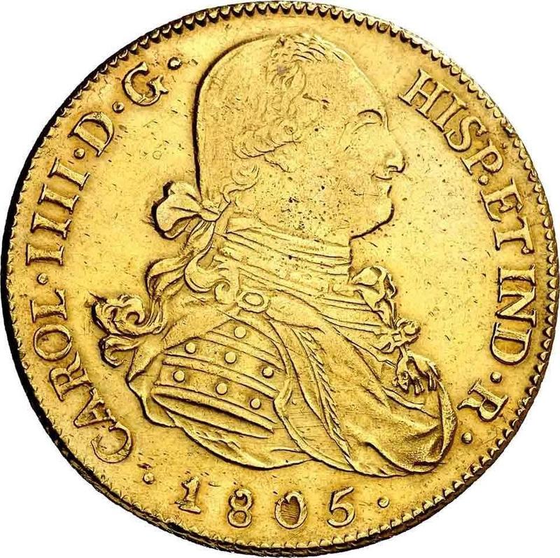 How much is the gold coin of Charles IV 8 Escudos 1805 PTS PJ?