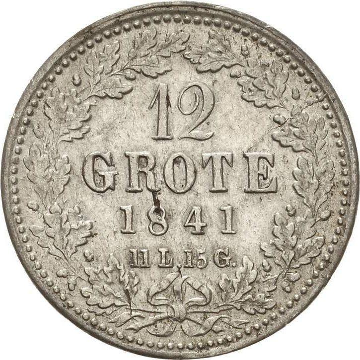 Find out the current coin value of the Bremen 12 Grote 1841 . This silver coin from the times of Free City struck at the Bremen Mint. Wondering how much a coin like this is worth? The record price belongs to the lot 867 sold at the WAG online Auktionen oHG auction for EUR 150. Bidding took place October 8, 2017.