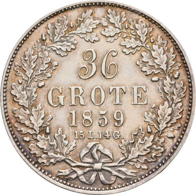 Find out the current coin value of the Bremen 36 Grote 1859 . This silver coin from the times of Free City struck at the Bremen Mint. Wondering how much a coin like this is worth? The record price belongs to the lot 61348 sold at the Heritage Auctions auction for USD 504. Bidding took place May 31, 2023.