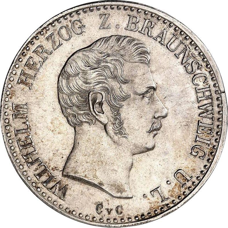 Find out the current coin value of the Brunswick-Wolfenbüttel Thaler 1838 with mark CvC. This silver coin from the times of William struck at the Braunschweig Mint. Wondering how much a coin like this is worth? The record price belongs to the lot 193 sold at the Westfälische Auktionsgesellschaft auction for EUR 3,300. Bidding took place December 13, 2012.