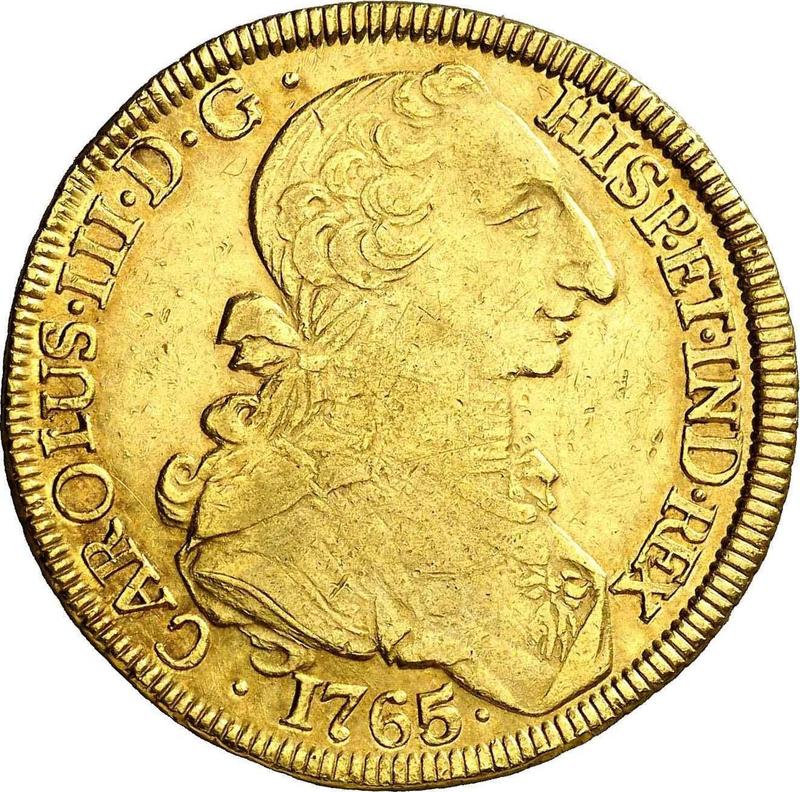 How much is the gold coin of Charles III 8 Escudos 1765 So J?