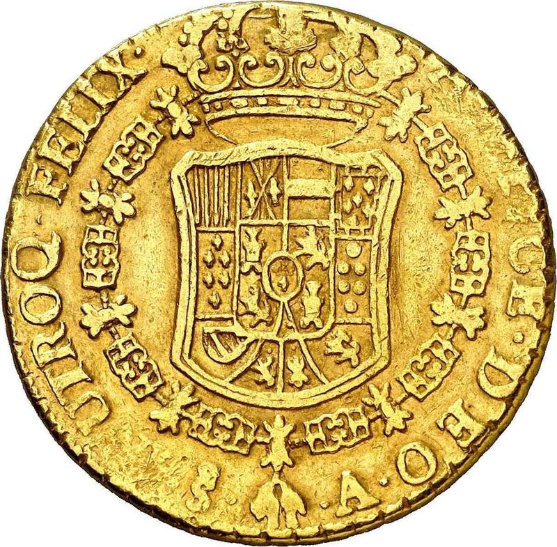 Find out the current coin value of the Chilean 8 Escudos 1771 with mark So A. This gold coin from the times of Charles III struck at the Santiago Mint. Wondering how much a coin like this is worth? The record price belongs to the lot 226 sold at the Aureo & Calicó, S.L. auction for EUR 8,000. Bidding took place March 17, 2011.
