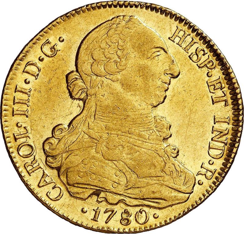 How much is the gold coin of Charles III 8 Escudos 1780 So DA?