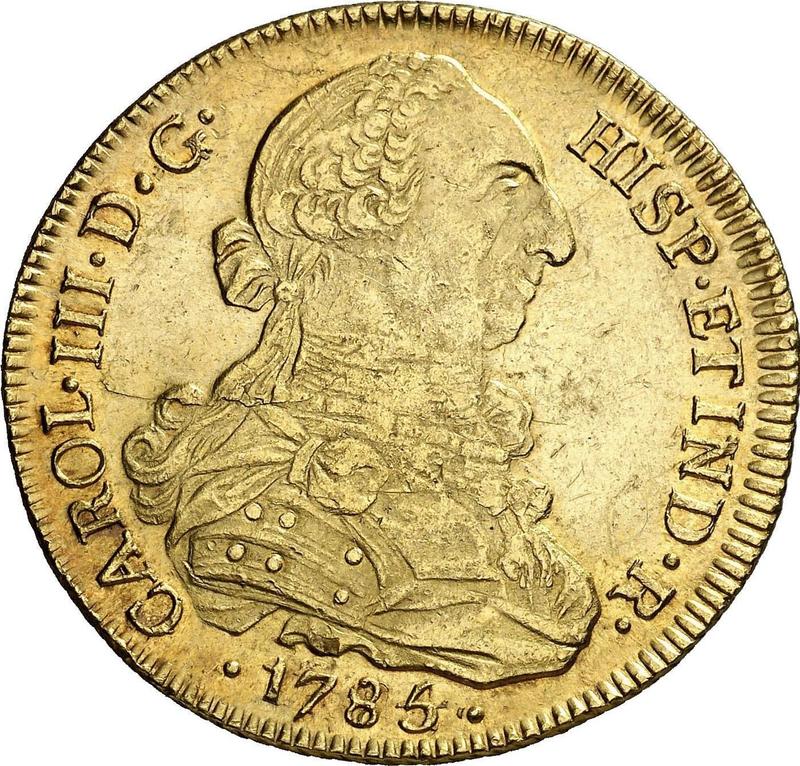 How much is the gold coin of Charles III 8 Escudos 1785 So DA?