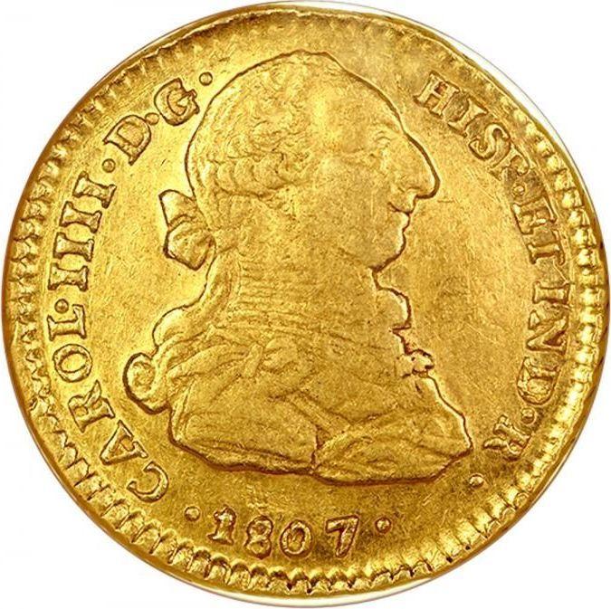 How much is the gold coin of Charles IV 2 Escudos 1807 So FJ?