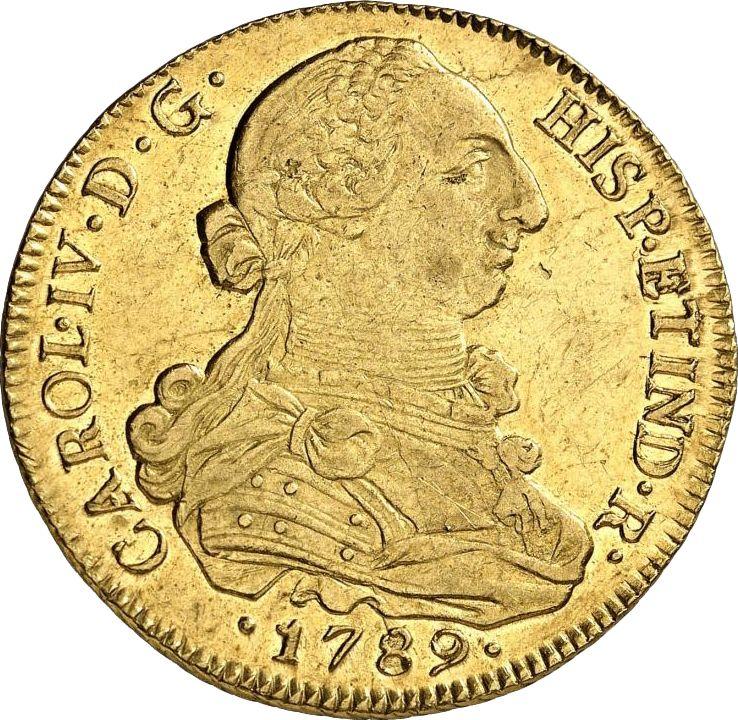 8 Escudos 1789 So DA (Chile, Charles IV)