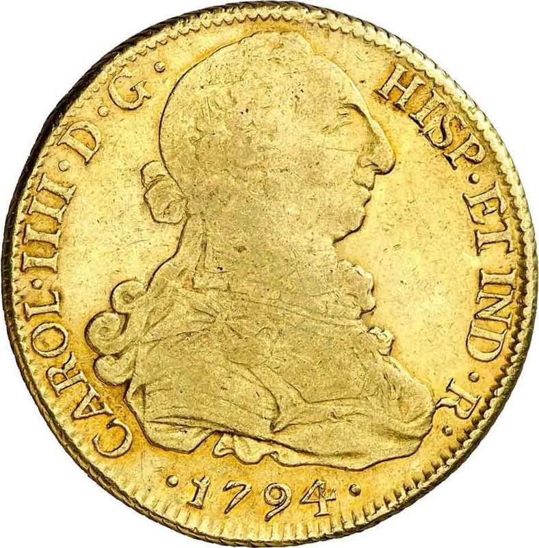 8 Escudos 1794 So DA (Chile, Charles IV)