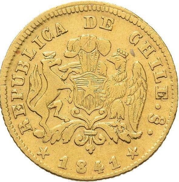 Find out the current coin value of the Chilean 1 Escudo 1841 with mark So IJ. This gold coin from the times of Republic struck at the Santiago Mint. Wondering how much a coin like this is worth? The record price belongs to the lot 297 sold at the Al Sur del Mundo auction for USD 2,800. Bidding took place November 19, 2025.