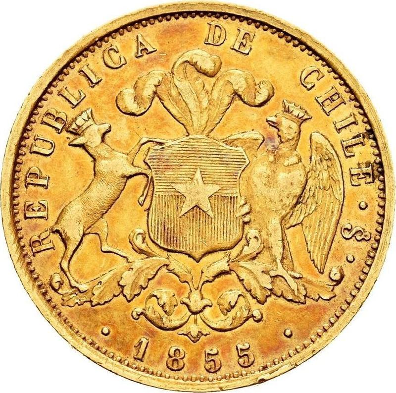 Find out the current coin value of the Chilean 10 Pesos 1855 with mark So. This undefined coin from the times of Republic struck at the Santiago Mint. Wondering how much a coin like this is worth? The record price belongs to the lot 63271 sold at the Heritage Auctions auction for USD 960. Bidding took place April 15, 2020.