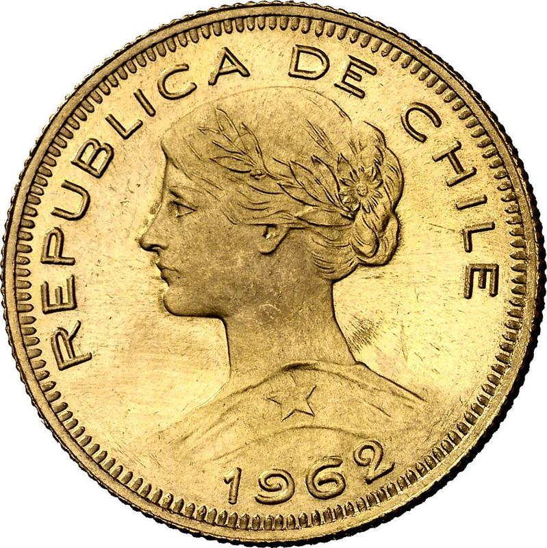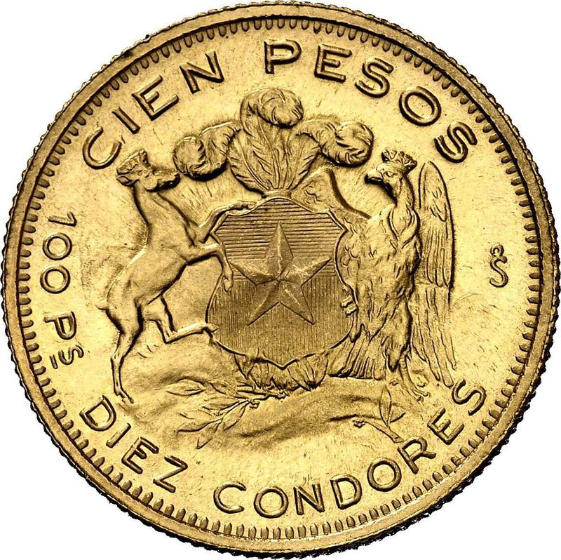 Find out the current coin value of the Chilean 100 Pesos 1962 with mark So. This gold coin from the times of Republic struck at the Santiago Mint. Wondering how much a coin like this is worth? The record price belongs to the lot 31601 sold at the Heritage Auctions auction for USD 1,920. Bidding took place May 5, 2022.