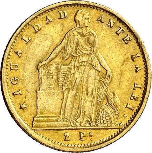 Find out the current coin value of the Chilean 2 Pesos 1856 . This gold coin from the times of Republic. Wondering how much a coin like this is worth? The record price belongs to the lot 32670 sold at the Heritage Auctions auction for USD 408. Bidding took place September 7, 2017.