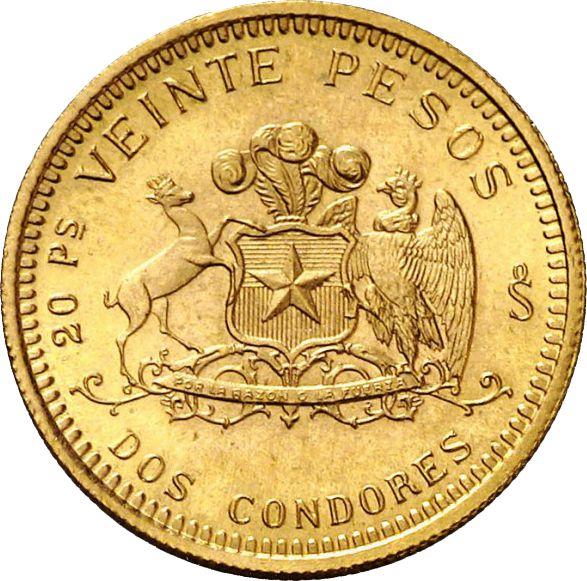 Find out the current coin value of the Chilean 20 Pesos 1976 with mark So. This gold coin from the times of Republic struck at the Santiago Mint. Wondering how much a coin like this is worth? The record price belongs to the lot 567 sold at the Dr. Reinhard Fischer Auktionen auction for EUR 1,400. Bidding took place May 26, 2021.
