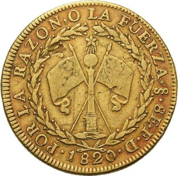 Find out the current coin value of the Chilean 8 Escudos 1820 with mark So FD. This gold coin from the times of Republic struck at the Santiago Mint. Wondering how much a coin like this is worth? The record price belongs to the lot 25016 sold at the Heritage Auctions auction for USD 10,800. Bidding took place May 22, 2023.