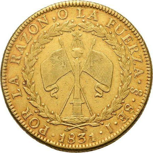 Find out the current coin value of the Chilean 8 Escudos 1831 with mark So I. This gold coin from the times of Republic struck at the Santiago Mint. Wondering how much a coin like this is worth? The record price belongs to the lot 25022 sold at the Heritage Auctions auction for USD 6,900. Bidding took place May 22, 2023.