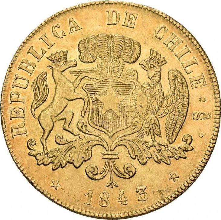 8 Escudos 1843 So IJ. Reeded edge (Chile, Republic)