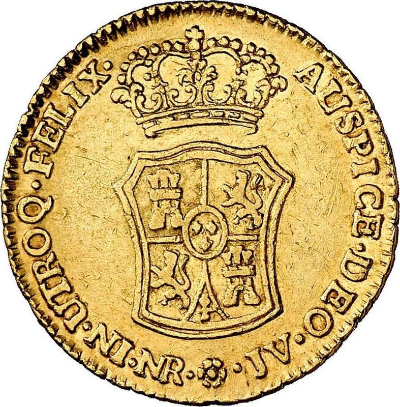 Find out the current coin value of the Colombia 2 Escudos 1767 with mark NR JV. This gold coin from the times of Charles III struck at the Nuevo Reino Mint. Wondering how much a coin like this is worth? The record price belongs to the lot 344 sold at the Cayón Subastas auction for EUR 1,950. Bidding took place February 9, 2023.