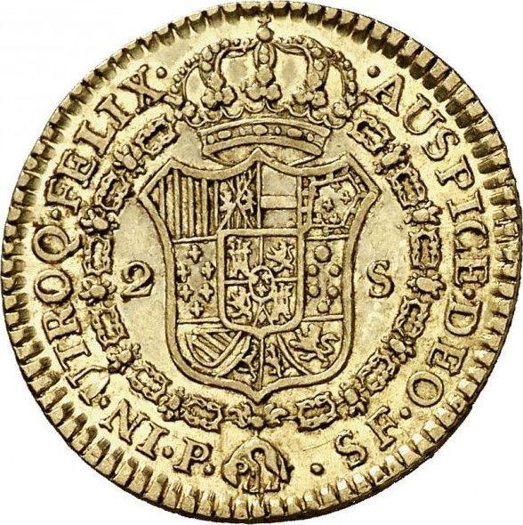 How much is the gold coin of Charles III 2 Escudos 1786 P SF?
