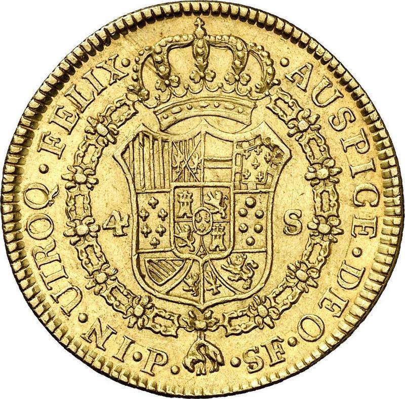 How much is the gold coin of Charles III 4 Escudos 1778 P SF?