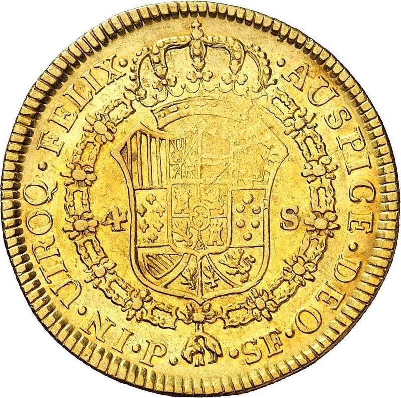 How much is the gold coin of Charles III 4 Escudos 1779 P SF?