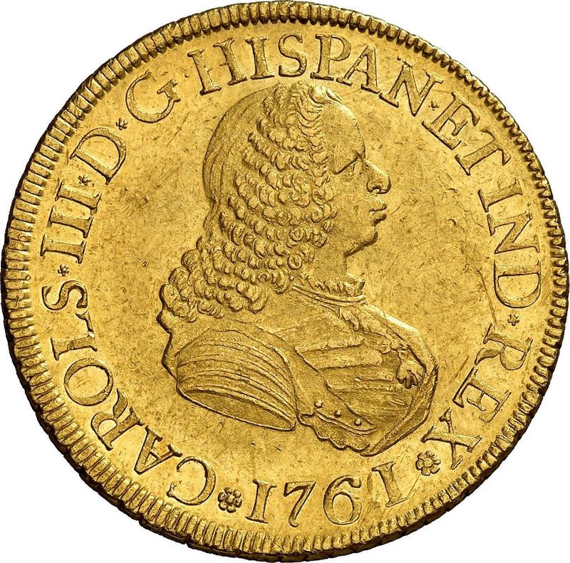 8 Escudos 1761 PN J (Colombia, Charles III)