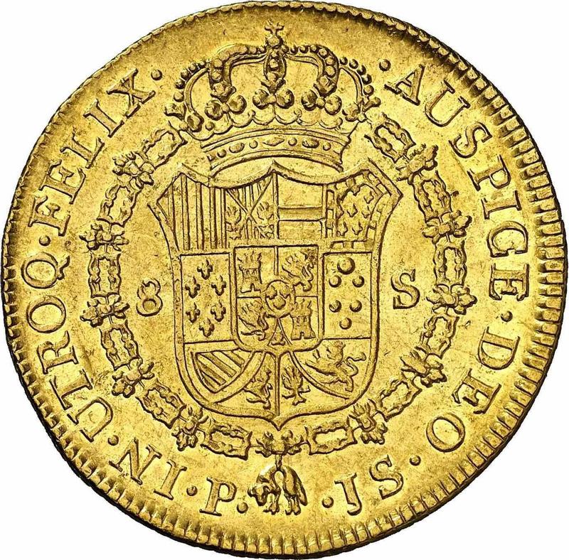 8 Escudos 1776 P JS (Colombia, Charles III)