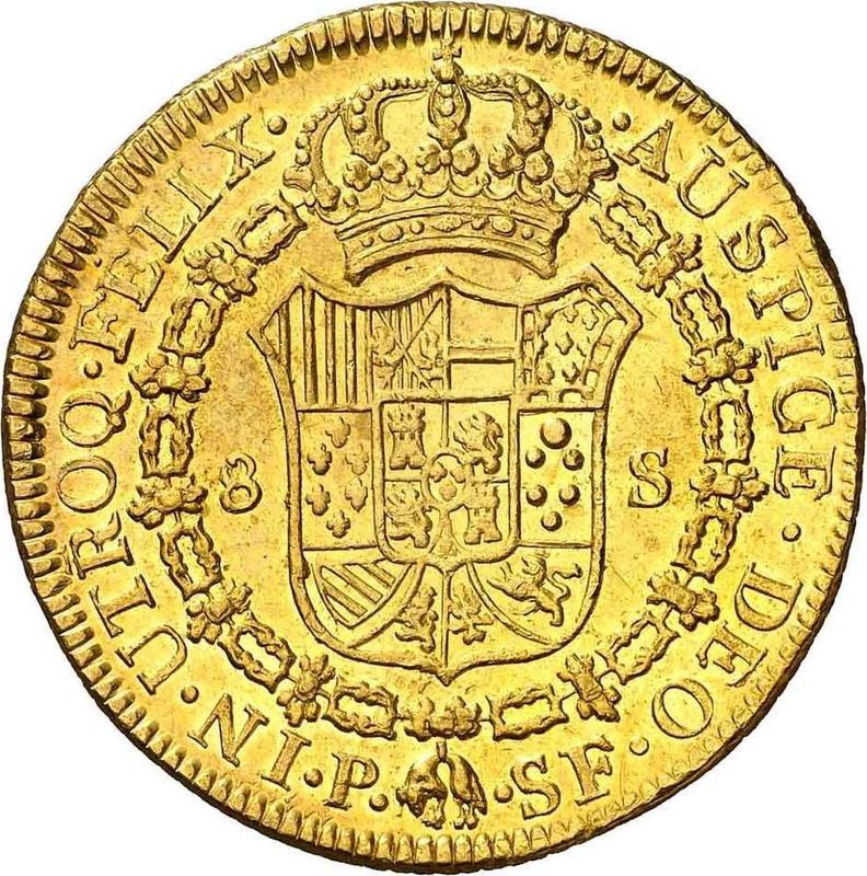 How much is the gold coin of Charles III 8 Escudos 1786 P SF?