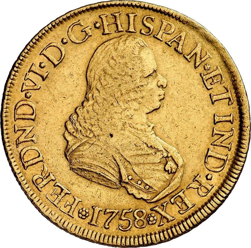 8 Escudos 1758 PN J (Colombia, Ferdinand VI)