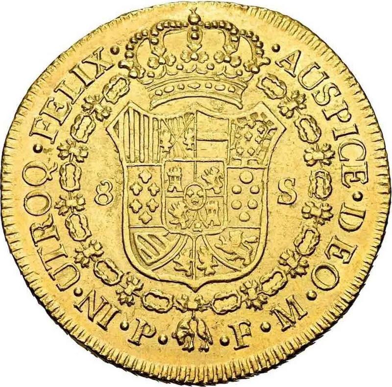 Find out the current coin value of the Colombia 8 Escudos 1820 with mark P FM. This gold coin from the times of Ferdinand VII struck at the Popayan Mint. Wondering how much a coin like this is worth? The record price belongs to the lot 35428 sold at the Heritage Auctions auction for USD 3,840. Bidding took place August 25, 2022.