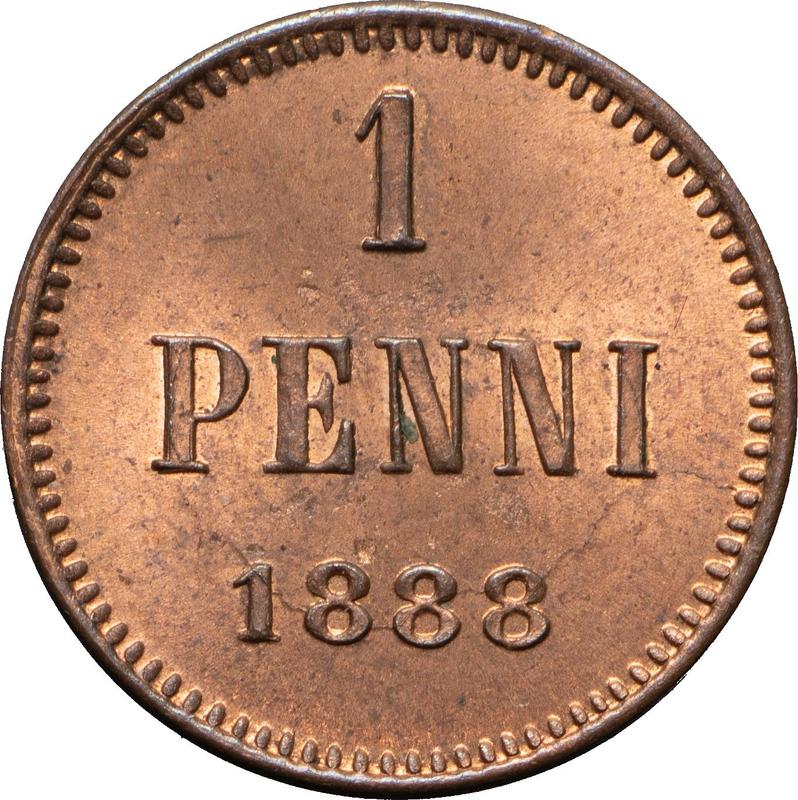 Find out the current coin value of the Finnish 1 Penni 1888 . This copper coin from the times of Grand Duchy struck at the Helsinki Mint. Wondering how much a coin like this is worth? The record price belongs to the lot 5159 sold at the Bruun Rasmussen auction for DKK 1,600. Bidding took place February 20, 2022.