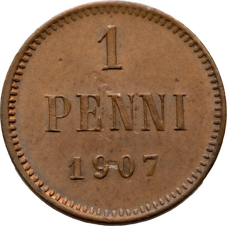 Find out the current coin value of the Finnish 1 Penni 1907 . This copper coin from the times of Grand Duchy struck at the Helsinki Mint. Wondering how much a coin like this is worth? The record price belongs to the lot 777 sold at the AB Philea & Myntkompaniet auction for EUR 1,000. Bidding took place May 11, 2024.